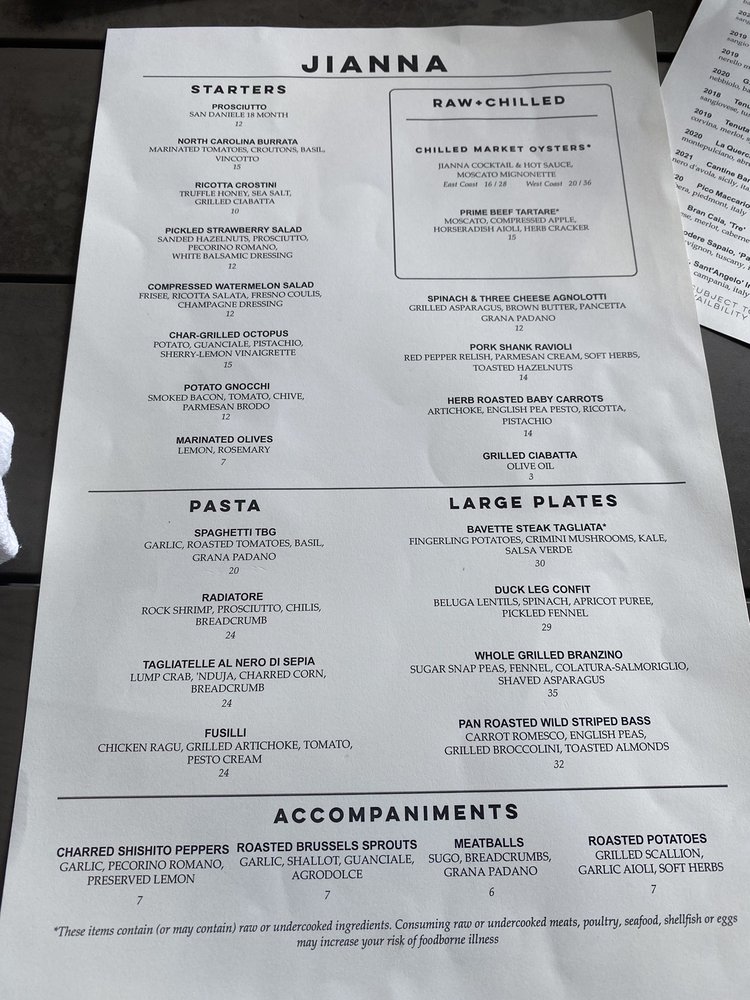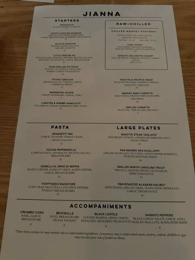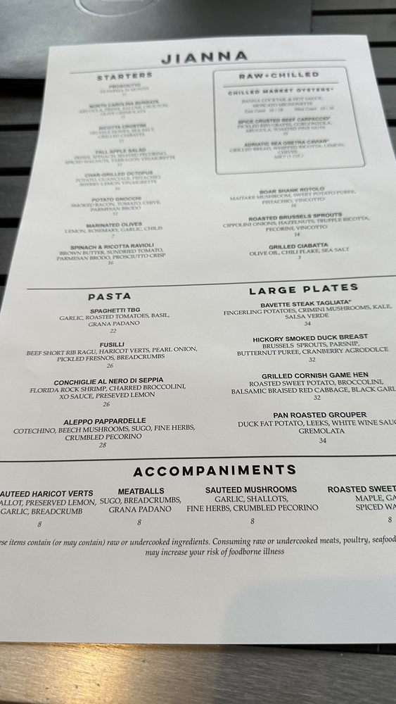 Jianna is a modern Italian eatery in downtown Greenville, SC, offering seafood specialties with a twist. Nestled above Lululemon, it boasts a stunning view of Falls Park, creating a vibrant atmosphere for diners. With a menu highlighting house-made pastas like black rigatoni with rock shrimp, char-grilled octopus, and potato gnocchi, Jianna impresses with its flavorful dishes. The attentive service and elegant ambiance add to the dining experience, making it a top choice for special events or casual dining. The personal touches, such as the chef's tribute to his mentor in the restaurant's name, show the care put into every aspect of Jianna. Whether sitting indoors or on the wraparound outdoor deck, guests can enjoy the exquisite flavors and picturesque surroundings, making Jianna a must-visit for Italian cuisine enthusiasts.